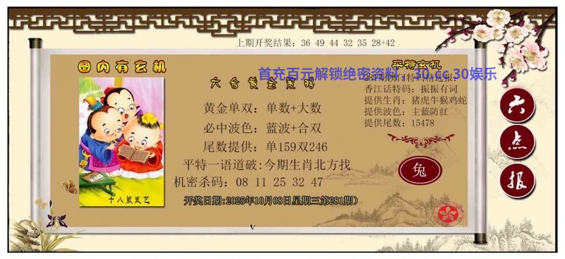 281期:平特连肖『虎鼠兔猴羊』开:2肖 |